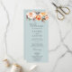 Ce programme de mariage rustique de fleurs de terre à la menthe est parfait pour un mariage de automne. L'élégante décoration de tons de terre comprend des fleurs rustiques d'aquarelle en terre cuite, en cuivre, orange brûlé, pêche, rose roux et blanc crème avec style boho vintage. Inclure le nom de la mariée et du marié, la date et le lieu du mariage, le message de remerciement, l'ordre de service, la fête de la mariée et un mémorial optionnel "en mémoire d'amour".