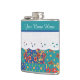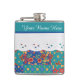 Un Hip Flask chic à personnaliser, avec une sensation nostalgique et un motif rétro Faux Patchowrk sur un arrière - plan Turquoise, paré de White Lace-effet. Faisant partie de la collection Posh & Painterly 'Granny Print', ce design peut être facilement ajusté pour s'adapter à n'importe quel flacon.