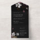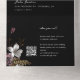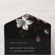 Ce design extraordinaire évoque une atmosphère de mystère et de romantisme, parfaite pour ceux qui recherchent un mariage avec une touche bohème. L'invitation présente un arrière - plan noir étonnant qui respire le raffinement et ouvre la voie à une fête inoubliable. Ornée d'un ensemble de fleurs sombres et moisies, elle s'épanouit avec un mélange captivant de violet profond, de violets veloutés et de tons de brun terreux. Ces fleurs captivantes, qui rappellent les fleurs sauvages trouvés au fond de la forêt, apportent un sens dramatique et profond au design.