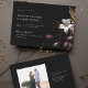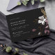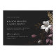 Dieses außergewöhnliche Design erinnert an eine geheimnisvolle und romantische Atmosphäre, ideal für diejenigen, die eine Hochzeit mit einer Touch von böhmischen Reiz suchen. Die Einladung zeigt einen atemberaubenden schwarzen Hintergrund, der Raffinesse ausstrahlt und die Bühne für ein unvergessliches Fest Set. Sie ist mit einer Reihe dunkler und launischer Blumen geschmückt und blühe mit einer fesselnden Mischung aus lila, samtigen Püree und erdigen braunen Farbtönen. Diese fesselnden Blüten erinnern an Wildblumen, die tief im Wald vorkommen, bringen ein Gefühl von Drama und Tiefe in das Design.