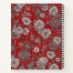 Una textura de tela con flores plateadas sobre un fondo rojo intenso que evoca un sentido de lujo, pasión y energía.