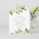 Des invitations à la douche sur mesure et abordables avec une élégante bordure florale peinte aux accents blanc, vert et faux or. Personnalisez le modèle avec les détails de votre événement ou utilisez les outils de conception pour customiser le texte, choisir les couleurs arrière - plans et modifier les polices pour créer votre propre conception d'invitation wedding shower unique. Le côté inverse comporte un joli arrière - plan vert sage ou utilisez l'espace pour ajouter du texte ou des photos supplémentaires si nécessaire. Ce magnifique design floral neutre est parfait pour toutes les saisons.