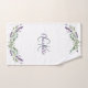 Arrière - plan blanc, décoré de fleurs de lavande et de verdure d'eucalyptus. Personnalisez et ajoutez un nom et des initiales monographiques. Le nom est écrit avec un script de style moderne écrit à la main.