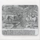 Florida-amerikanischer Ureinwohner, der Rotwild jagt, während er unter Hirschhäuten, von "Americae Decima verkleidet wird, stellt" durch Theodor de Bry | graviert durch Kunst-Standort Jacques Le Moyne | gleich: Bild-Sammlungs-Zahl der Privatsammlung-| französischen des Künstler-|: BAL111681