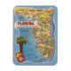 Eine Vintage Karte des Staat von Florida mit seinen wunderschönen Sehenswürdigkeiten, den besonderen Städten. Es ist farbenfroh, tropisch und macht ein lustiges Geschenk oder Souvenir.
