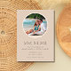 Genießen Sie Ihren besonderen Tag mit unserem Florida Beach Wedding Foto Save the Date. Die Vorderseite besticht durch eine lebendige Retro-Sonnenuntergangsgrafik, die den nostalgischen Charme einer klassischen Florida Beach Szene widerspiegelt. Auf der Rückseite finden Sie alle Ihre Hochzeitsdetails neben einem schönen Foto des Ehepaares, und fügen eine persönliche und herzliche Touch. Das Hotel ist der ideale Ort, um eine unvergessliche Hochzeit am Strand zu verbringen. Save the Date lädt es Ihre Gäste zu einem Fest voller Sonne, Sand und Liebe ein