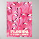 Florida Everglades Flamant rose affiche de voyage d'époque. Dessin de Floride, art de voyage d'oiseaux.