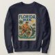 Florida Man is tough, fearless and will wrestle a shark on any beach, any time! If the sun's out, Florida man is sure to have his guns out. This humorous spin on vintage Florida travel poster art is designed to make you chuckle. This funny sweatshirt will turn heads and get compliments. | Pro-Tip: For vibrant colors, we recommend vivid printing for most apparel. For white apparel select classic printing.