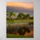 Foto eines herrlichen Sonnenuntergangs, der einen See mit Palmen in einem tropischen Rahmen reflektiert. Fotografiert in Florida.
