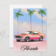 Florida Pink Sunset Reiseplakat mit einem retroamerikanischen Muskelauto gegen einen Sonnenuntergang im Abend.
