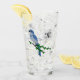 Eine Florida Scrub Jay, die auf einem Zweig stehend ist. Der hübsche Vogel blickt auf die links, die blauen Federn liegen hinter dem Ast. Rechts oben ist ein Wasserzeichen des Vogels und der beste Platz für das Monogramm, da der Buchstabe M standardmäßig angezeigt wird und geändert werden kann.