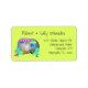 Étiquettes d'adresse de retour thématiques du camping. Étiquettes de charme lumineux avec une jolie image de remorque de voyage en argent et des flamants tropicaux à côté de chaises d'aqua lumineuses. Nom ou nom, aller en haut avec un texte imprimé plus petit aligné à droite pour l'adresse. Utilisez 2 à 5 lignes pour l'adresse au besoin.