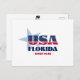 Carte postale de Floride. Un design de typographie créatif qui encapsule l'essence de la Floride avec des couleurs audacieuses rouge, blanc et bleu, et des éléments patriotiques, y compris les étoiles et les rayures.