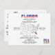 Floride. État des États-Unis d'Amérique. Marqué rouge sur la carte des États-Unis. Informations utiles sur la capitale, la plus grande ville, le fuseau horaire, ainsi que sur les points les plus élevés et les plus bas. Le nombre de la population, le nom de l'Etat avant la création de l'Etat et la date d'admission à l'Union, le surnom, la devise et la chanson de l'Etat. Le mot Florida est décoré avec le drapeau américain aux couleurs bleu, blanc et rouge. Texte personnalisable 50 ETATS et l'image-texte USA en bas à droite à l'avant et à l'arrière. Texte modèle personnalisable au verso. Vous pouvez modifier ou supprimer des textes modèles et vous pouvez utiliser votre propre logo à la place de l'image USA. C'est une carte postale pour n'importe qui. Vous pouvez transférer cette conception à un autre produit de votre choix, il suffit d'utiliser une option à droite de cette description. Profitez et soyez heureux !