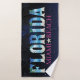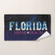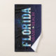 Floride, Miami Beach Bath Towel Set Cet ensemble de serviettes de bain d'été tendance et élégant de 2023, Un design qui contient le mot Floride, avec l'effet de la mer, le soleil, et des arbres, et est caractérisé par les couleurs bleues de la mer et du sable jaune, et en dessous il est le mot Miami Beach à fuchsia Il est conçu pour les amateurs des plages de Floride et Miami l'ida est l'état le plus au sud-est des Etats-Unis et compte des centaines de kilomètres de plages.