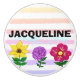 Schublade für das Mädchenzimmer oder Accessoires für die Kleiderablage. Personalisieren Sie den Namen in schwarzem Großbuchstaben. Hübsche gelbe, lila, fuchsienartige Blume. Gelbe, pfirsichfarbene, rosa, lila, pastellfarbene Streifen vor weißem Hintergrund. Klicken Sie bei Bedarf auf Anpassen, um die Größe des Schriftartes für Name zu erhöhen/zu verringern. Für Schubladen oder Drehknopf konzipiert. Original Artwork and Design von TamiraZDesign.