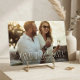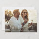 Announce your upcoming wedding with these elegant save the date cards by Redwood and Vine Design Co, featuring a horizontal photo with a white text overlay in classic, oversized serif lettering with script flourish accents. Customize the back with additional text and a custom QR code leading to your wedding website for more information.