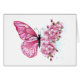 Flower arrangement of pink butterfly with rose Japanese cherry blossoms on white background.