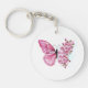 Flower arrangement of pink butterfly with rose Japanese cherry blossoms on white background.