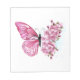Flower arrangement of pink butterfly with pink Japanese cherry blossoms on white background.