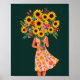 Dieser Kunstdruck zeigt ein Gemälde einer Frau mit einem großen Bouquet, das ihren Kopf bedeckt.