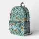 Flower Pattern orange Swirl Berry on Turquoise - Bedruckter Rucksack
