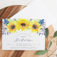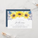 L'invitation à la douche à nuptiale à fleurs et à l'ambiance champêtre est dotée d'une bordure supérieure de tournesols aquarelles, de minuscules bourgeons bleu marine et de feuillage vert. Personnalisez avec vos détails de douche nuptiale en écriture manuscrite moderne et en écriture serif traditionnelle. Les invitations à la douche nuptiale se retournent vers le bleu du port riche.