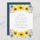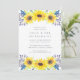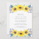 Nos Flowerfields bridesmaids déjeuner invitation entoure vos détails de douche déjeuner ou brunch avec grappes de tournesols jaunes aquarelles, bourgeons bleus et violets, et feuillage vert. Un choix sucré pour les brunchs d'été ou d'automne dans un cadre rustique extérieur ou champêtre.