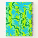 Spiral bound subject, or personal, notebook. Hand-drawn floral vines in bold colors of aqua blue, chartreuse and green. Include your name, or subject of study, in the center over a blue, uneven circle shape. Text is white with a shadow to stand out. The font is hand-written in casual printing. This large 8x11 size is perfect for class notes in botany or biology.