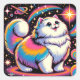 Fluffe weiße Katze im Weltraum Quadratischer Aufkleber