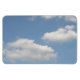 This awesome magnet .feature a photograph of some fluffy white cumulus clouds floating leisurely across a beautiful blue sky.