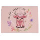 Dieses Design besticht durch eine niedliche, flauschig rosa schottische Kuh mit traumhaften Augen, umgeben von Blume. Ein niedliches Design für jede Kinderparty.