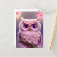 Fluffy Pink Owl mit Herz Postkarte
