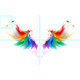 Fluffe Regenbogenflügel auf weißem Hintergrund.