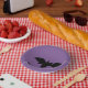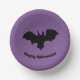 Fledermaus auf lila Papierschüsseln. Frohe Halloween!