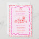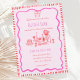 Diese trendige handgezeichnete illustrierte Hochzeitseinladung enthält ein Drehbug- und Abendtischelement. Das skurrile und sonderbare Design beinhaltet handgeschriebenen Schriftart und Festdoodles. Rosa und Rot für klassische und moderne Hochzeitsfeste.