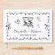Quirky retro-inspiriertes Gästebuch mit einem gewellten Rahmen, der mit Kokettenbögen verziert ist, von der Hand gezeichnete Illustrationen eines Herzens, Sterne und Weingläser und die Namen der Braut und des Bräutigams in einem lustigen Drehbuch. Passen Sie Ihren Titel auf der Wirbelsäule an.
