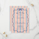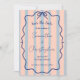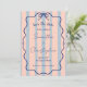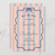 Eine farbenfrohe Hochzeit, die eine süße Harmonie aus rosa, staubigen blauen Streifen, einem gewellten Doodle-Rahmen und einem blauen Bogen bietet. Diese einfache, aber romantische Kombination aus Retro-Kulisse und eleganter Skriptkalligraphie macht diese Einladung zu einem einzigartigen und lustigen Erlebnis.
