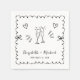 Retro-inspirierte Hochzeitsnapkins für Ihre Verlobungsfeier, Probe Dinner, Empfang, etc. mit einem trendigen, mit Kokettenbögen verzierten Rahmen, handgezeichneten Herzensbildern und toastenden Champagnergläsern und den Namen der Braut und des Bräutigams in einer lustigen, spielerischen Handschrift.
