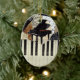 Dieses schön getane Keramikverzierung kennzeichnet ein großartiges Klavier auf einer Tastatur, die durch Musiknoten umgeben wird. Es ist von einem ursprünglichen Stück Collagenkunst erfolgt vom Faserkünstler Loretta Alvarado.