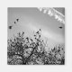 Schwarze Vögel wurzeln in einem Baum, während einige ihrer Mitglieder fliegen. Hang dies, wo immer du heute die Inspiration der Natur brauchst!