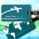 Ein einfaches und modernes Design, um Ihre Sachen zu identifizieren, wenn Sie um die Welt reisen. Weißes Flugzeug auf blauem Hintergrund mit Ihrem Namen auf der Vorderseite und individuelles Zitat "hier geht es wieder"... mit zusätzlichen Informationen auf der Rückseite, mit einer grafischen Weltkarte.