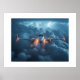 Poster wird mit einem Foto-Kunstdruck eines Flugzeugs unter den Sturmwolken gezeigt. AI Enhanced Customize dieses Objekt oder kaufen, wie es ist. Lizenziertes Bild