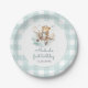 Flugzeug Teddy Bear Pastel Gingham 1. Geburtstag Pappteller