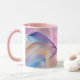 Eine elegante, abstrakte Komposition, bei der sich durchscheinende Wellen in Rosa, Blau, Gold und Violett mühelos über einen weichen, neutralen Hintergrund bewegen. Die geschichteten Bänder wirken schwerelos und luftig wie in der Luft schwebende Seide und erzeugen ein Gefühl von Balance, Bewegung und moderner Eleganz. Subtile Farbverläufe und eine zarte Transparenz verleihen diesem Kunstwerk eine verfeinerte, zeitgenössische Ästhetik, die in minimalistischer Innenarchitektur, kreativen Studios oder beruhigenden persönlichen Räumen wunderbar zur Geltung kommt. Ausgefeilt und dennoch beruhigend bringt dieses Stück sanfte Farben und dynamischen Fluss in jede Umgebung.