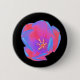 Dieser hübsche Knopf zeigt ein schönes Bild einer Tulpe. Das Foto wurde künstlich gefärbt, was zu einer fluoreszierenden Tulpe führte. Die Blütenblätter sind in Blau- und Rottönen gehalten, die inneren Blätter in Rosa und lila. Der Mittelpunkt der Blume ist hellgelb. Der schwarze Hintergrund zeigt die atemberaubende Schönheit dieser Blume.