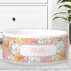 Paweinige Aquarellblumen in den Retro-Frühlingsblumen, Blumenmuster, Tierschale mit Namensschild, für das niedliche Furry Mädchen. Kate Eden Art
