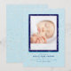 Annoncez l’arrivée de votre petit avec style grâce à ce faire-part de naissance photo vertical. Le design cosy "Baby Flurry" avec des détails doux de flocon de neige encadre la photo de votre nouveau-né magnifiquement, créant une famille de gardiens et des amis chérissent. Célébrez l’arrivée de votre bébé avec ce faire-part de naissance photo vertical bleu de la collection Baby Flurry. Doté d'un arrière - plan doux inspiré des chutes de neige et de polices manuscrites, c'est la meilleure façon de présenter votre nouvel ajout. Ajoutez le nom de votre bébé, les détails de sa naissance et une photo préférée pour une carte de souvenir personnalisée. Idéal pour envoyer un courrier à la famille et aux amis ou pour sauver comme un souvenir dans un livre de bébé. Associez-vous à la papeterie de coordination et à la décoration de la suite Baby Flurry pour un look complet.