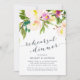 Élégante et moderne invitation à la répétition florale présente un bouquet de fleurs d'aquarelle pastel éthérées dans les tons crème et rose roux, avec des accents botaniques verdoyants. Personnalisez avec vos détails de dîner de répétition dans une élégante typographie bleue de minuit agrémentée de calligraphie manuscrite. Cartes inversées à vert jasper solide.
