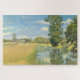 Ein goldener Sommer entfaltet sich durch eine dänische Landschaft, wo ein sanfter Fluss durch Felder schlängelt, die mit reifen Körnern schwer sind. Hans Andersen Brendekilde malt diesen ruhigen Augenblick mit warmen Gelbtönen, sanften Grüntönen und ruhigen blauen Reflexionen im Wasser. Die Landschaft leuchtet unter der Nachmittagssonne und ruft die Ruhe und den Reichtum des ländlichen Lebens während der Erntezeit hervor.